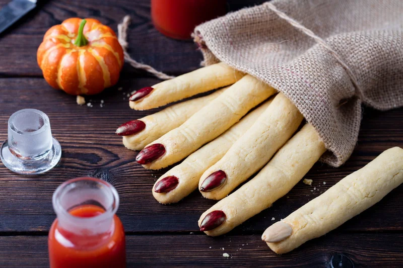 Печенье «Пальцы ведьмы» на Хэллоуин Это очень вкусное и невероятно "страшное" печенье непременно будет в центре внимания во время вечеринки на Хэллоуин. , Еда и рецепты