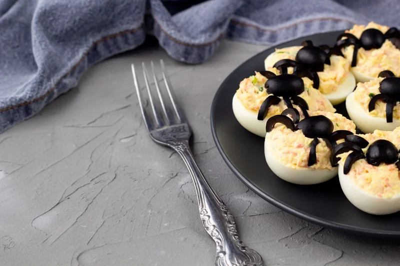 Фаршированные яйца с пауками к Хэллоуину Уж не знаю почему, но ужасы и кошмары - неотъемлемая часть Хэллоуина. , Еда и рецепты