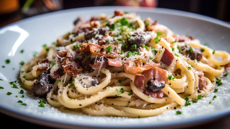 Паста (спагетти) карбонара с грибами и беконом – нежнейшее и вкуснейшее блюдо на каждый день. Попробуйте!