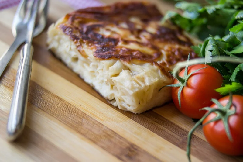 Пирог с луком и творогом на слоеном тесте