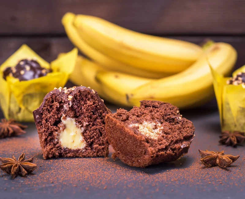 Шоколадно-банановые капкейки - это полноценный десерт, который с лёгкостью заменит торт.