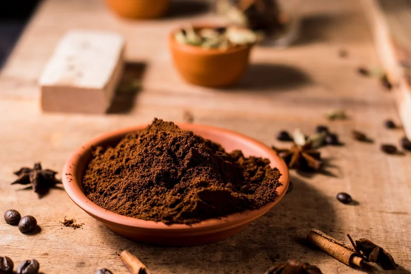 4. Измельчите специи. Мне нравится использовать для этого ступку. Вдыхать удивительный аромат и наблюдать, как постепенно меняется текстура обжаренных специй, - увлекательный, расслабляющий и приятный процесс. Но для некоторых специй, например, лаврового листа и корицы пригодиться мельница или даже кофемолка. Впрочем, приправа порадует вас удивительным ярким вкусом, независимо от способа помола.