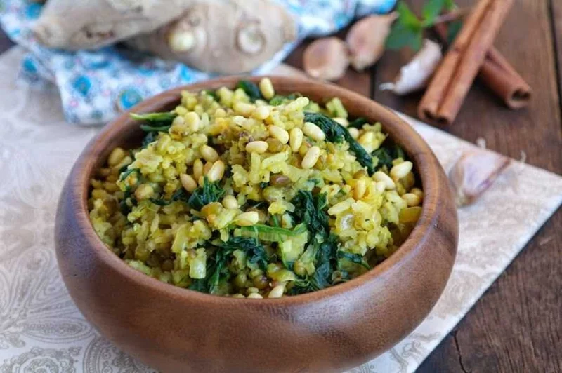 7. Закрывайте сковородку крышкой и ставьте на маленький огонь. Готовится кичари около 25 минут.