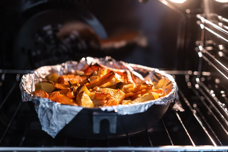 7. Поместите овощи в разогретую до 200-210 градусов духовку и выпекайте 30-40 минут, до мягкости.