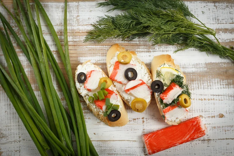 7. Горячие бутерброды с крабовыми палочками готовы. Съедать сразу же.