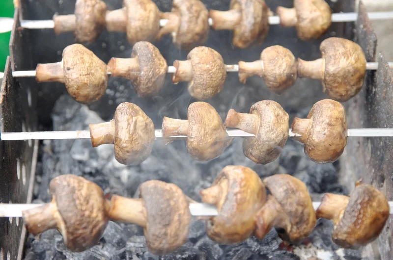 Шашлык из шампиньонов в духовке Шашлык из шампиньонов в духовке (с беконом) - простое в приготовлении и очень вкусное блюдо. , Еда и рецепты