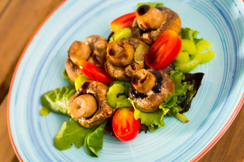 Теплый салат с шампиньонами Казалось бы, в этом салате сочетаются такие простые и будничные компоненты, но тем не менее, попался на глаза он мне совсем недавно. , Еда и рецепты