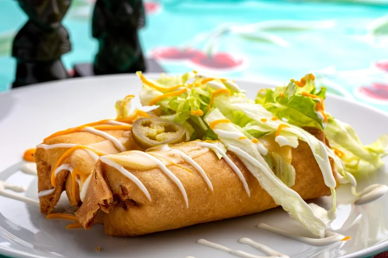 Весенняя чимичанга Чимичанга - это мексиканская закуска, жареный во фритюре буррито. , Еда и рецепты